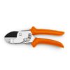 Kovácsolt. Műanyag bevonatú markolatok, cserélhető penge. Élő fához. 21,5 cm, 255 gramm, 25 mm-es gallyátmérőig. Kovácsolt, krómozott modell. Könnyen cserélhető, drótvágóval rendelkező penge, ellentartó penge folyadékelvezető horonnyal.